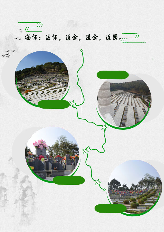 本墓园努力建成“彩色、环保、生态型、公益性”的半经营性生态公墓、绿化面积不低于70。本着“简谱、方便、美观、少占绿地、不破坏自然生态”等原则合理布局,打造文化、艺术、景观、生态相结合的现代化墓园,体现祭扫缅怀和休闲游憩双功能。...【更多>>】